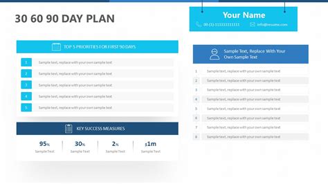 30 60 90 Day Plan Template Powerpoint. Planning is an important marketing step. It is an effective way to go above and beyond your competition and using one of our editable slides for PowerPoint you can impress your audience and future employers. In the event that you glance around, you'll proclamation that whatever is marked. From a tiny container to a huge office act out area, all single situation will undoubtedly have at any rate one mark. Naming things is valuable, easy and functional, and the applications are basically interminable. You can find a broad assortment of names accessible available, in various shapes and sizes, styles, plans, hues, materials, template, etc.